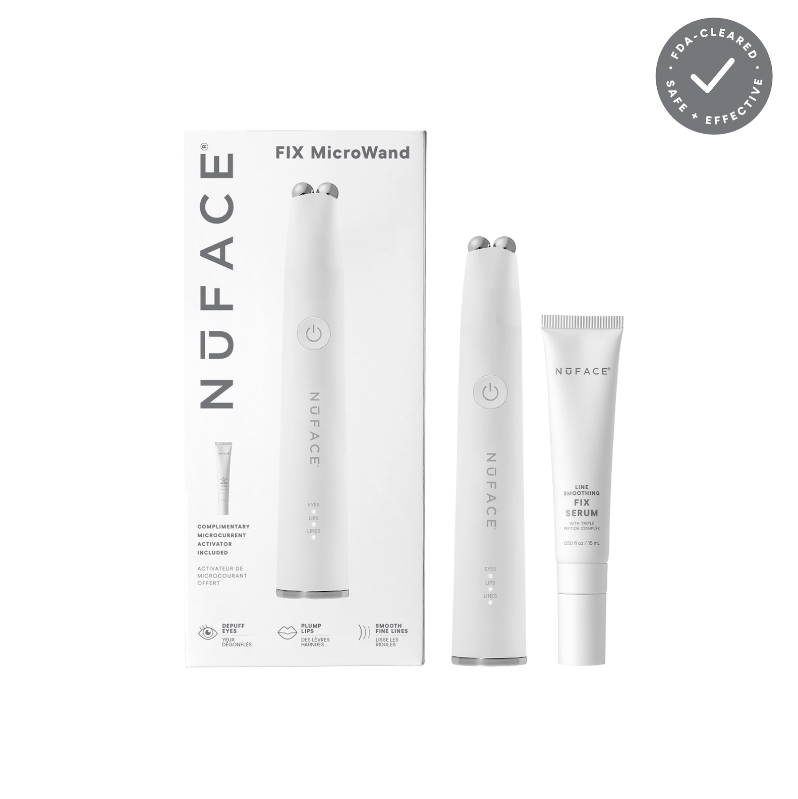 NuFACE FIX Device provides gentle NuFACE microcurrent energy to instantly firm, smooth, and tighten the look of skin. The addictive NuFACE FIX Serum the first ionic Microcurrent Skincare formula, is supercharged with active beauty ingredients that help smooth, tighten, and brighten skin.